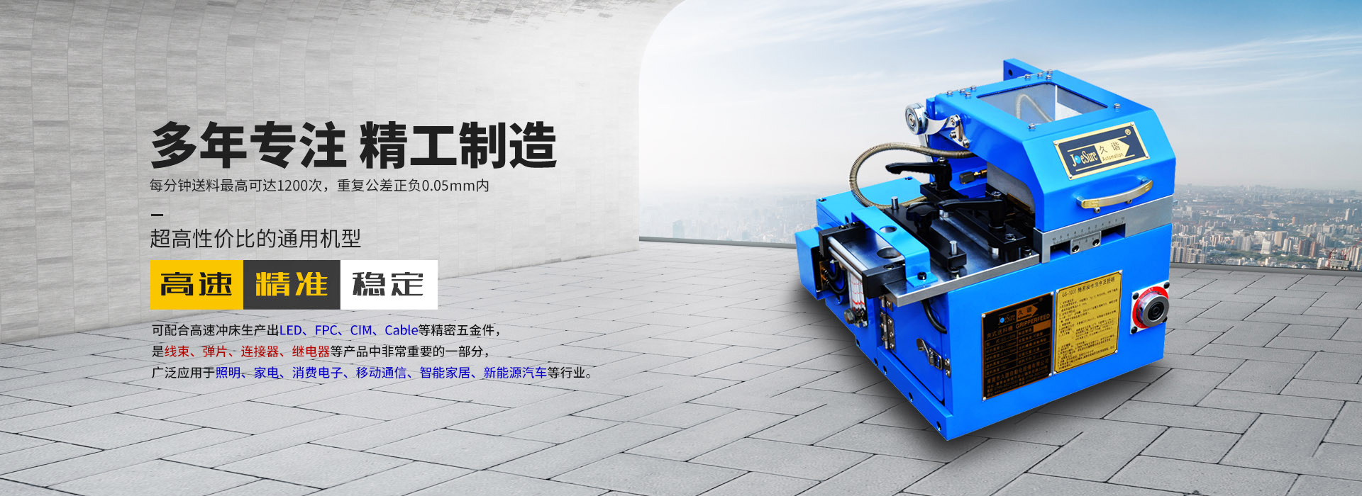 高速、精準、穩定:送料段數高達1200spm/min,送料速度高達100m/min,重復公差±0.05mm內,采用日本進口電機及自主研發高性能控制系統,穩定性高。